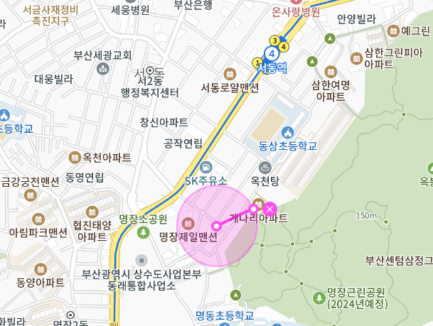 지하철 버스 편의점 카페 은행 관공서 학교 병원 약국 영화관 학원